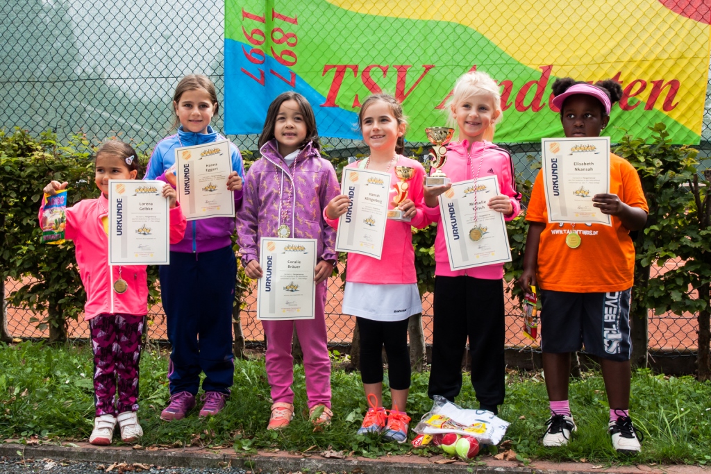 Die sechs Juniorinnen U10 spielten in zwei 3er Gruppen am Samstag. Im Finale spielten Zoe Schmidt (TC Munster) und Finja Simara (TSV Anderten). Die beiden bestritten schon 2013 das U8 Finale, was Zoe gewinnen konnte und auch diesmal war Zoe nach einem knappen ersten Satz indem Finja lange führte die Siegerin.